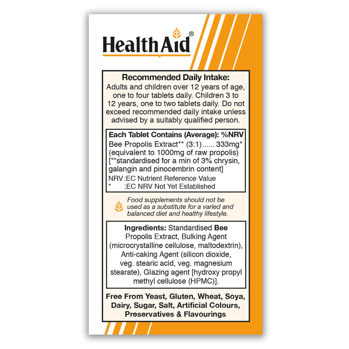 Bee Propolis 1000mg Tablets contain Bee Propolis, which is a natural source of antioxidant. Considered one of nature’s miracles, propolis is the resinous substance gathered by bees and used in the beehives to keep their colony healthy. Propolis contains protein, amino acids, vitamins, minerals, flavonoids and as such it is said to have a wide range of natural health benefits.