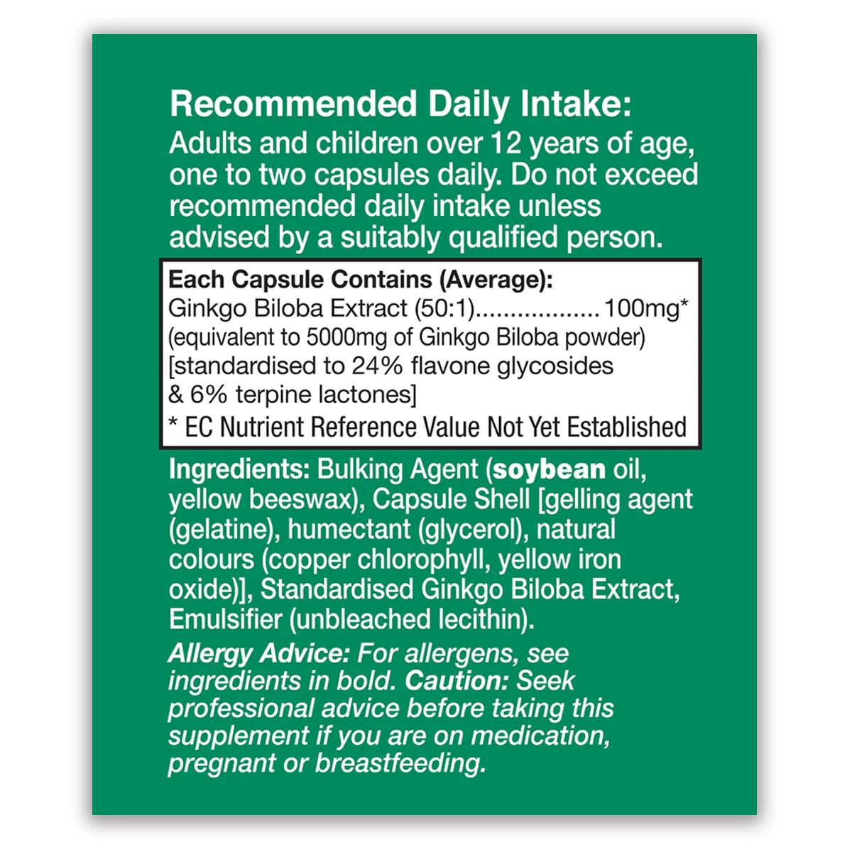 Recommended Daily Intake of Ginkgo Biloba Extract 5000mg Capsules :
